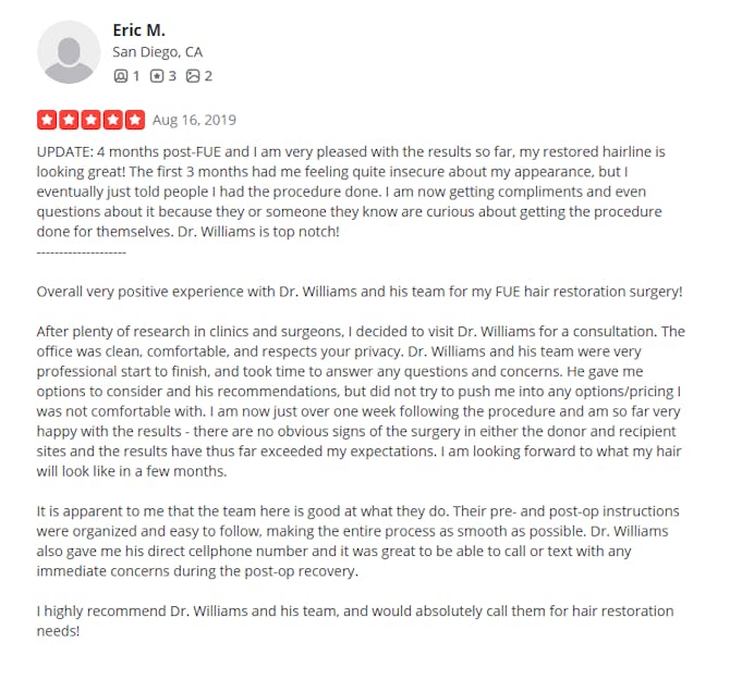 Depending upon your expectations and surgical donor supply, for patients wanting less than an executive hairline, you will be given Dr. Williams’ brand new guide just for taking the assessment