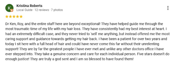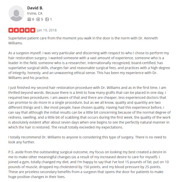 If you qualify, you will be provided additional insights from Dr. Ken Williams himself as to why his process is so unique and effective for executives looking for a discreet hairline procedure.