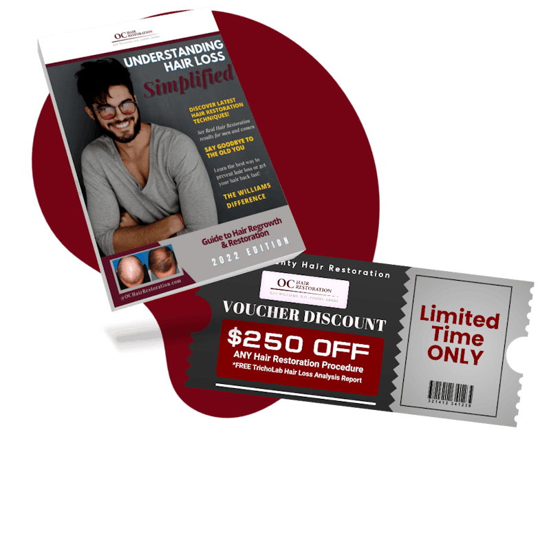 This guide will help regardless of what stage of hair loss you are in. Plus get a $250 off Voucher towards ANY Hair Restoration Procedure with Dr. Ken Williams!